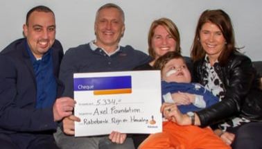 Hardlopers van het eerste uur Hafid en Nelly kwamen langs om met elkaar de actie ‘Team Axel in de Singelloop 2019’ af te sluiten en …daar hoort natuurlijk een cheque bij.